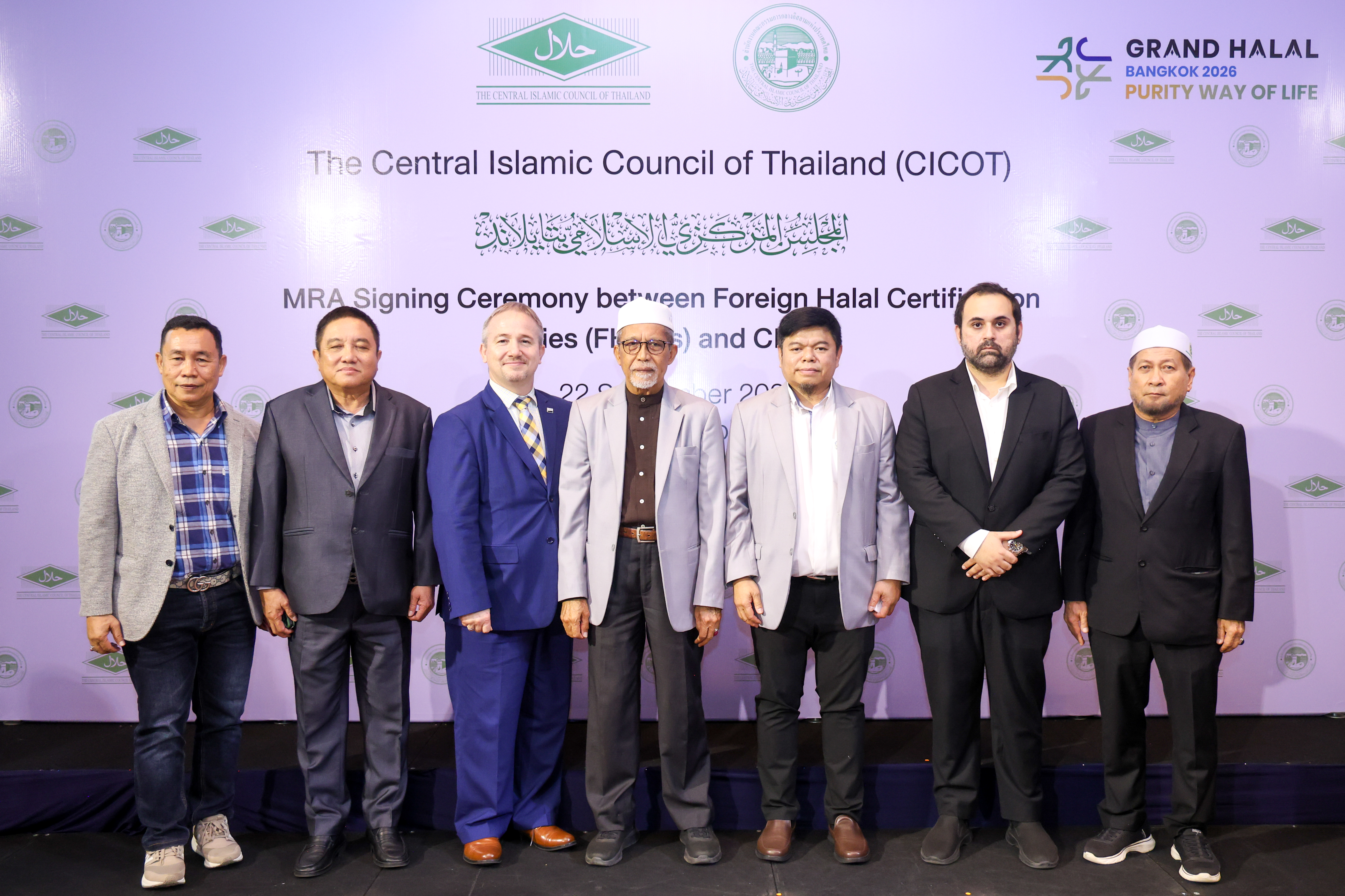 ทั้งนี้ เพื่อเสริมสร้างโอกาสและต่อยอดศักยภาพของไทยในเวทีเศรษฐกิจฮาลาลทั่วโลก คณะกรรมการกลางอิสลามแห่งประเทศไทย (The Central Islamic Council of Thailand (CICOT)) กิจกรรมMutual Recognition Agreement[MRA] Signing Ceremony between Foreign Halal Certification Bodies (FHCBs) and CICOT